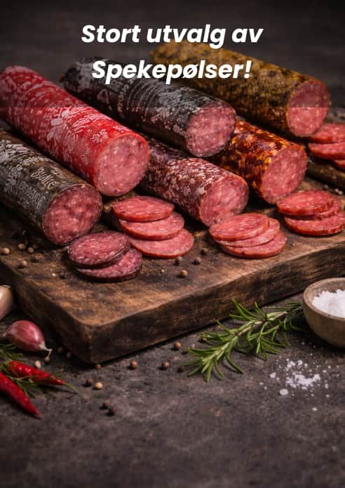 Hos oss finner du et bredt utvalg av spekepølser i ulike størrelser, fra små til store. Våre kvalitetspølser tilbyr god smak til en god pris.